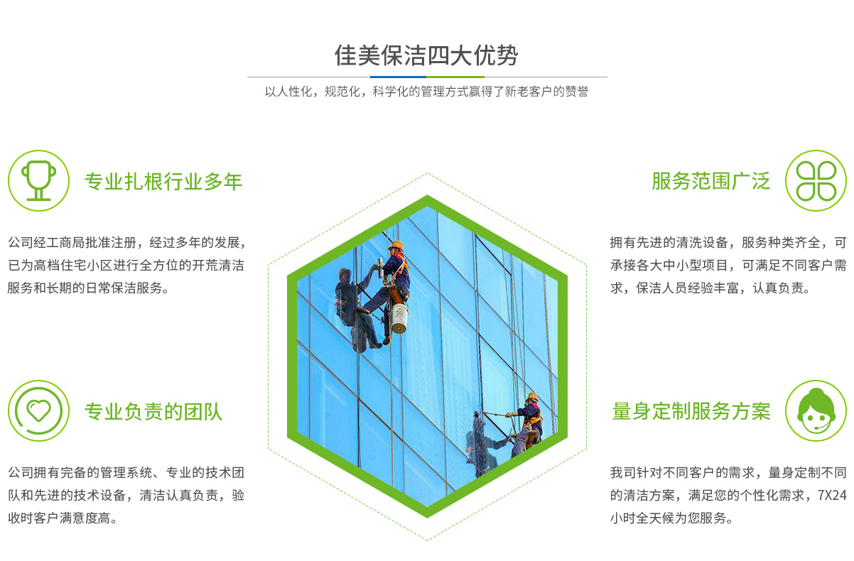 - 馬鞍山市佳美保潔服務有限公司是一家經(jīng)工商部門批準,具有法人資格專業(yè)清洗,馬鞍山保潔服務的公司,自創(chuàng)辦以來,一直致力于企業(yè),家庭,賓館,學校,別墅,酒店,商廈,公共設施等場所提供科學的日常保潔和清潔保護的服務公司,有著豐富的管理服務和保潔經(jīng)驗...
